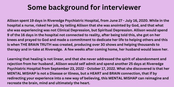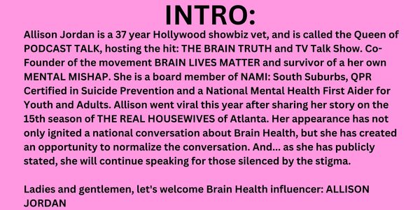 THE BRAIN TRUTH with Allison Jordan premiered Sept. 28, 2021 on Intellectual Radio, iHeart, Apple Podcast, YouTube and Twitch to an overwhelming response with over 5k viewers. Since the debut, the show is now broadcasted on more than 15 platforms with an audience reach on Apple Podcast of over 117.8 million people in the U.S. Our YouTube has reached a cumulative of over 15k viewers and over 1k subscribers and growing rapidly.